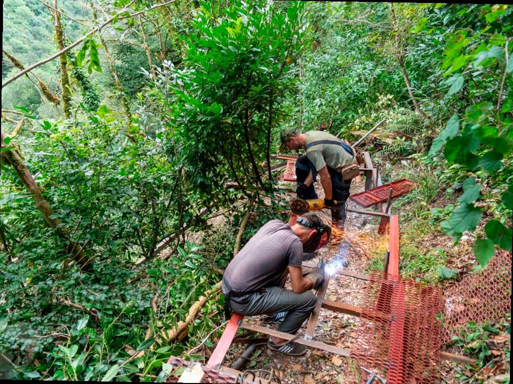Демонтаж старых конструкций уже завершен. Новые работы займут около двух недель. Специалистам придется переносить около 10 тонн грузов на руках из-за сложного рельефа.
